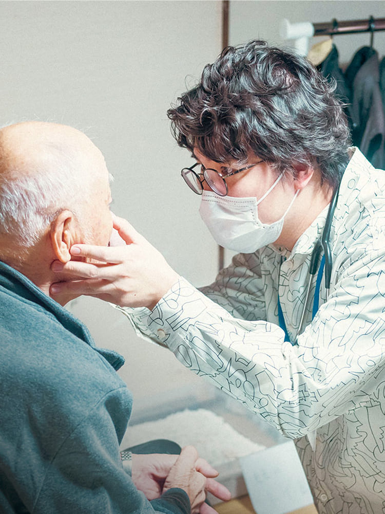 おうち診療所は、患者さんのお住まいに訪問して診療を行う医療機関です。「通院が必要だけど、病院まで行くのが難しい」「病院ではなく、リラックスできる自宅で診療を受けたい」「他の患者さんの目を気にすることなく、家族と過ごしたい」といった、一人ひとりの希望や都合を伺い、チームで連携しながら、ご自宅や施設での生活をサポート。患者さん自身が望む訪問診療を選択できるように支援します。